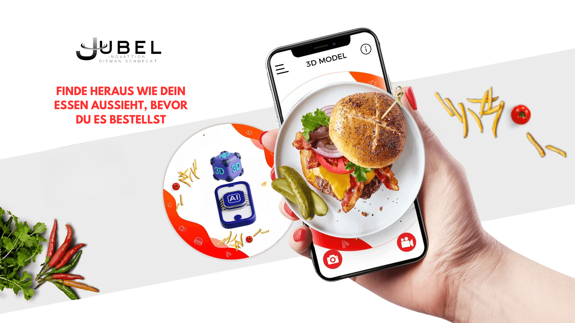 JUBEL ist die optimale Lösung für verschiedene Einsatzbereiche – sei es für digitale Speisekarten, innovative 3D AR-Technologie, Reservierungssysteme oder den Website-Bau. Mit unseren innovativen Tools verbesserst du dein Unternehmen und dessen Abläufe.